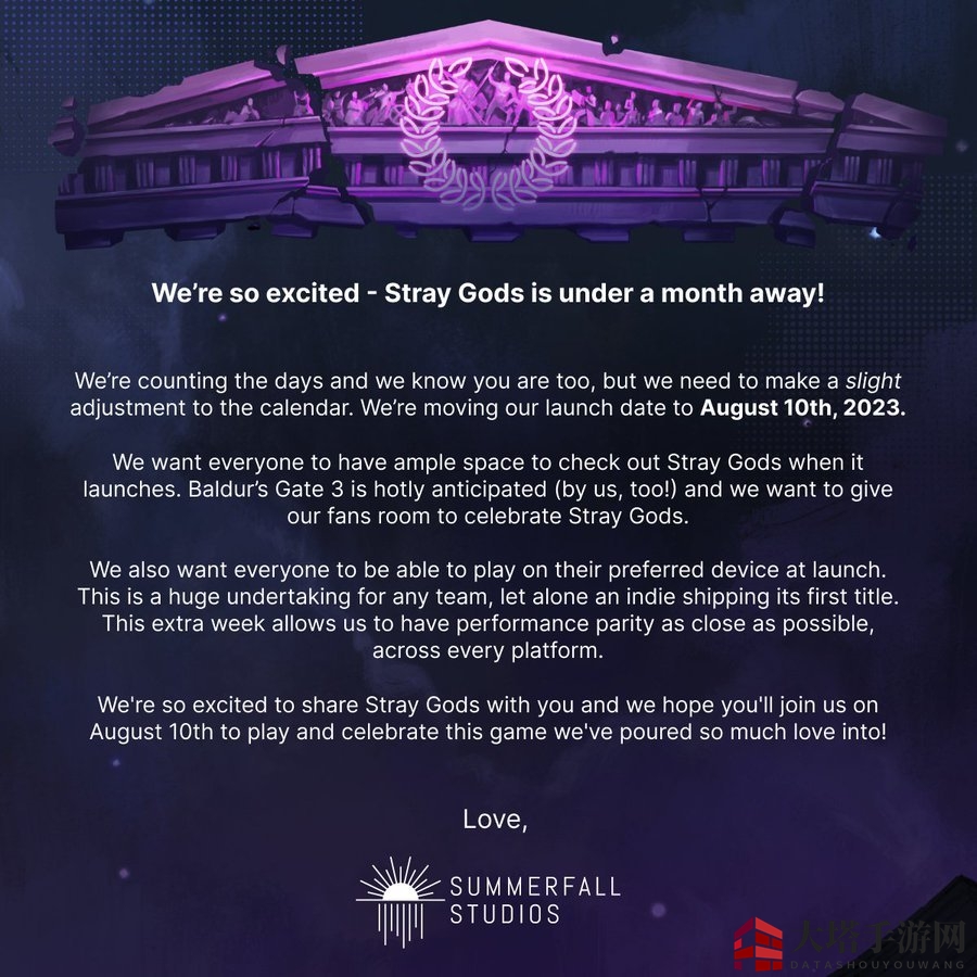 我们希望每个人都能在《stray gods》发布时,有足够的时间去体验这款游戏。《博德之门3》备受瞩目(我们也是!),我们希望给粉丝们留出空间,共同庆祝《流浪之神》的上市。
